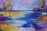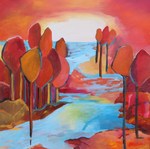 2012Reizigers trekken door het land op ondekkingsreis. Geschilderd op doek met acryl.