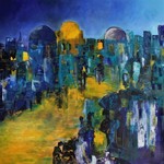 2011Het schip zeilt de haven binnen. Abstraheerd geschilderd op doek met acryl.