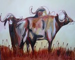 2015Kamelen bij de Bedoeïenen in de Wadi Rum. Techniek is Biester inkt op paper ingelijst.
